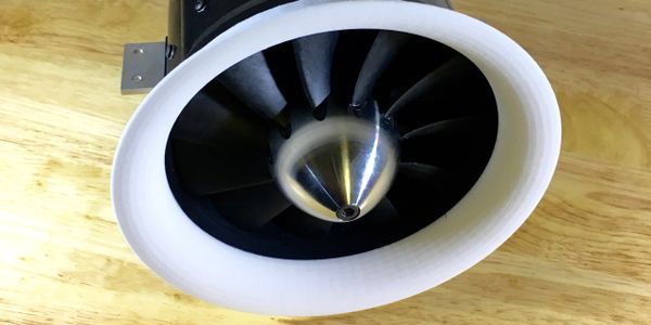 This exhaust duct was designed to increase the efflux (fan air velocity) generated by the fan. The proper shape and size was determined after testing several different sized ducts to find the optimal length and exhaust diameter. Using this exhaust duct helps to generate a higher thrust and efflux at reduced fan RPM while improving motor cooling when used in conjunction with my tailcones.